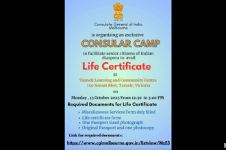 വിക്ടോറിയയിലെ പ്രവാസി ഇന്ത്യക്കാർക്കായി ലൈഫ് സർട്ടിഫിക്കറ്റ് ക്യാമ്പ്